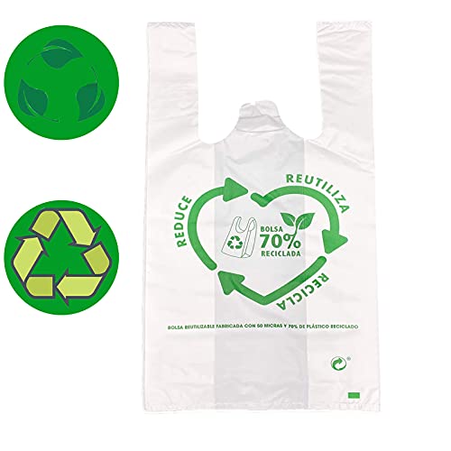 Sacchetti in plastica con manici resistenti, riutilizzabili e riciclati.