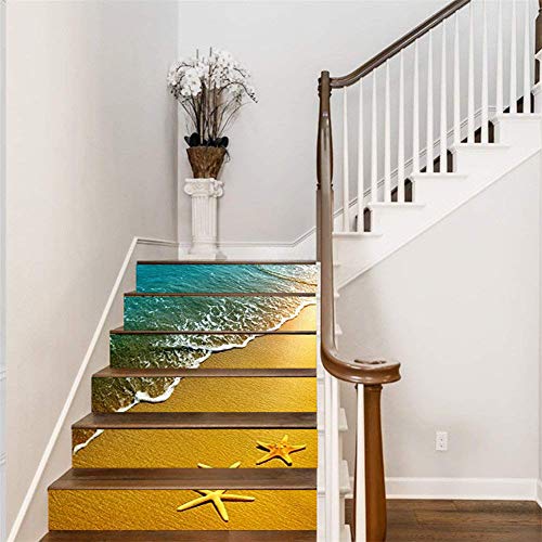 FLFK 3D Oceano Spiaggia Stella marina Autoadesiva Le scale Alzate Murale Vinile decalcomania Sfondo Adesivi decalcomanie 39,3 pollici x7,08 pollici x 6 pezzi