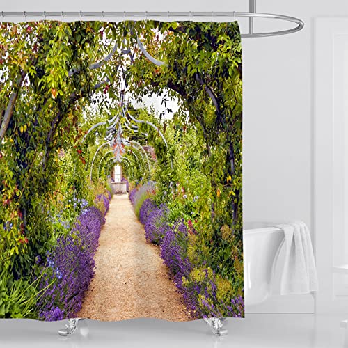 OCEUMACO 3D Giardino Verde Tenda Doccia Antimuffa Design Fiori Lavanda Tende Doccia Angolare Tessuto Poliestere Impermeabile 180x200 cm Floreale Natura Tenda Vasca da Bagno Lavabile con Anelli