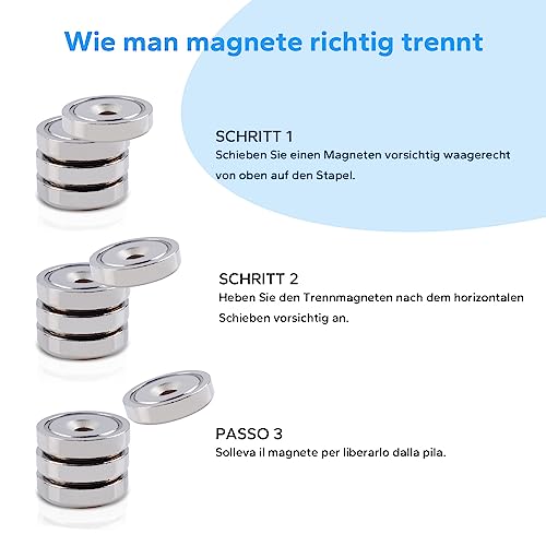 Ampia gamma di applicazioni: i magneti al neodimio con foro possono essere fissati con viti. Utilizzato in diverse occasioni come casa, ufficio, officina, magazzino, ecc. I forti magneti di aspirazione possono contenere e fissare oggetti che non cadono facilmente