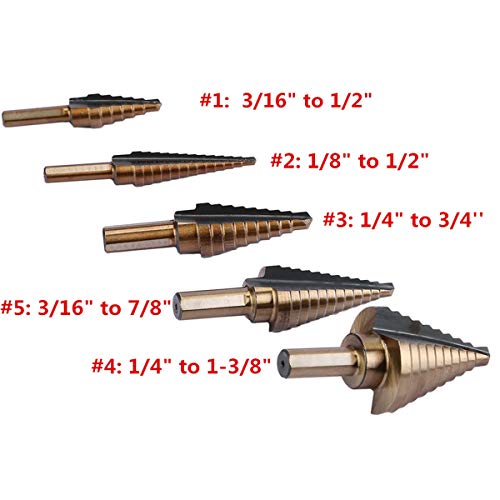 OCGIG 5Pcs 50 Dimensioni HSS Cobalt Set Di Trapano a Passo Con Custodia In Alluminio