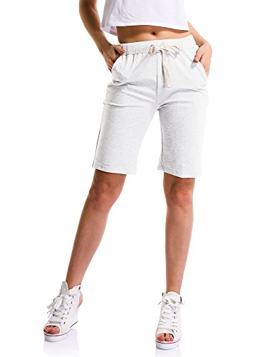 OCHENTA Donna Elastico Pantaloncini Basic in Maglia Bianco IT 48 - Tag 4XL
