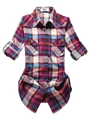 OCHENTA - Flanella Camicia - Maniche Lunghe - a Quadri - Donna C009 Purple Asian 4XL - Italiana 48