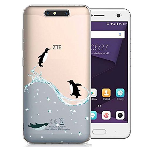 Ocketcase ZTE Blade V8 Custodia, Morbido Flessibile TPU Gel Silicone Cover Case Trasparente Ultra Sottile Protettiva Pelle AntiGraffio per ZTE Blade V8 (Pinguino) con Stilo Penna