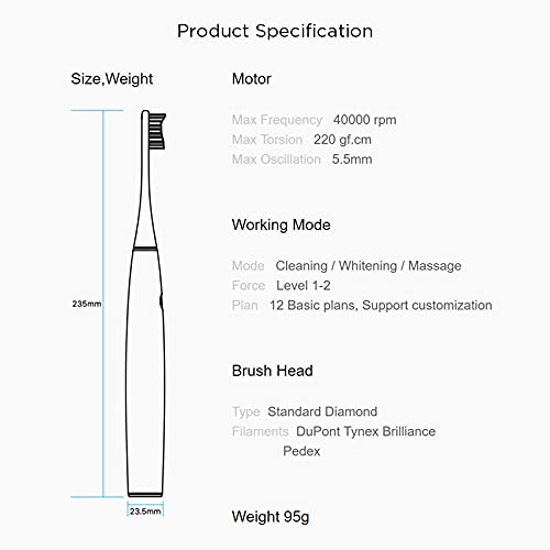 Oclean Air Power Rechargeable Electric Sonic Waterproof Smart Toothbrush with Pressure Sensor (Pink)