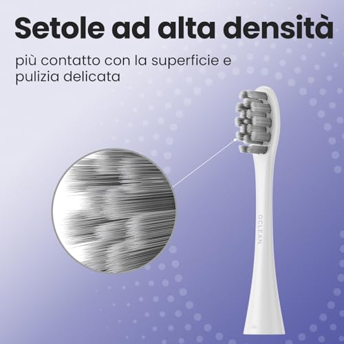 Cura delle gengive superiore: la testina originale Oclean per la cura delle gengive (modello: P1S12) presenta setole ultra morbide e punta con setole diamantate progettate per ridurre l'accumulo di placca lungo la linea gengivale.