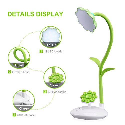 Luce da lettura indicata per bambini: dotata di una grande luce di lettura idonea per il comodino dei bambini grazie all'aspetto gioioso del girasole e una base stabile.