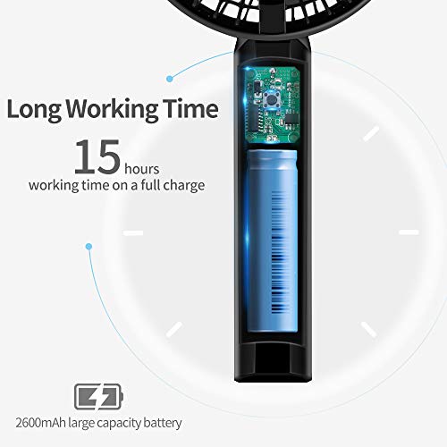 OCOOPA Mini ventilatore portatile USB con batteria ricaricabile 2600 mAh, pieghevole, compatibile con laptop, presa multiporta per viaggi e a casa Nero