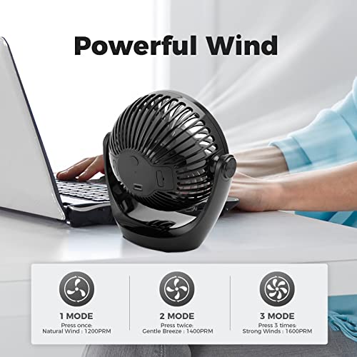 OCOOPA Ventilatore da Tavolo, 2000mAh Batteria Ricaricabile e USB Ventilatore Portatile, Ventilatore da Scrivania Potente e Silenzioso, 3 Velocità Ventilatore, Rotazione di 360 ° per Interno e Esterno