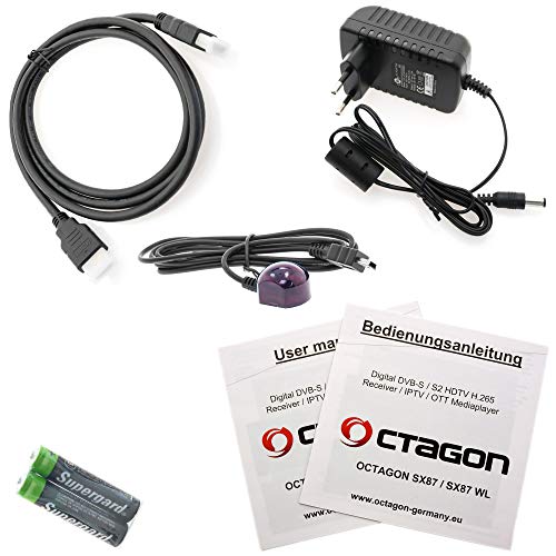 OCTAGON SX87 HD H.265 S2+IP HEVC - Lettore di schede multimediali, DLNA, YouTube, Web-Radio, USB PVR, cavo HDMI