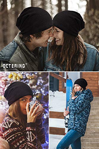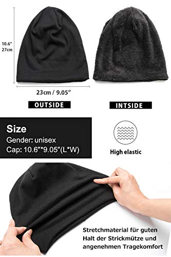 OCTERING Slouch Beanie Berretto da uomo e da donna in cotone elastico unisex Fodera in pile grigio scuro #06. Taglia unica