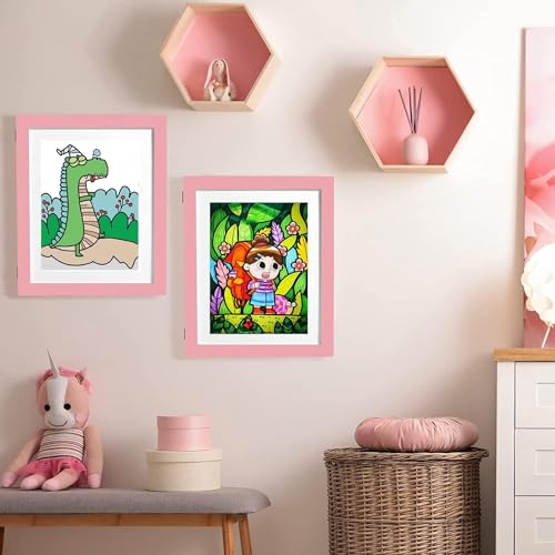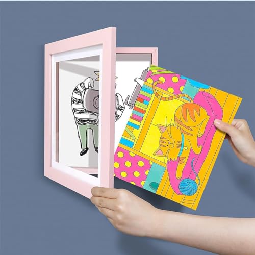 Octonyluck Cornice artistica per bambini, cornice disegni bambini A4, apertura frontale, cornice pieghevole riempibile per conservare e mostrare disegni per bambini, galleria di famiglia, bordo rosa