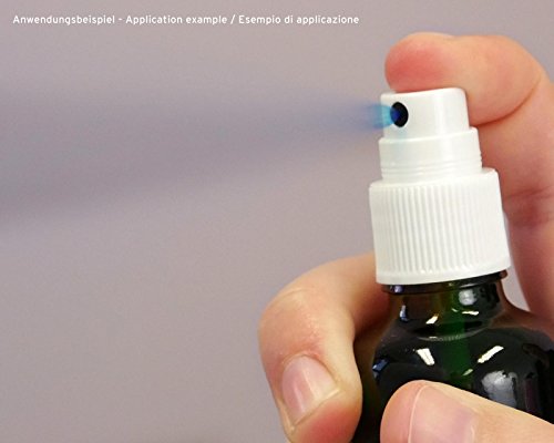 Consegna: 10 x 30 ml flaconi di farmacia con testa a spray (Filettatura 18 mm), 1 Mini imbuto (Ø 39 mm) e etichette per didascalie