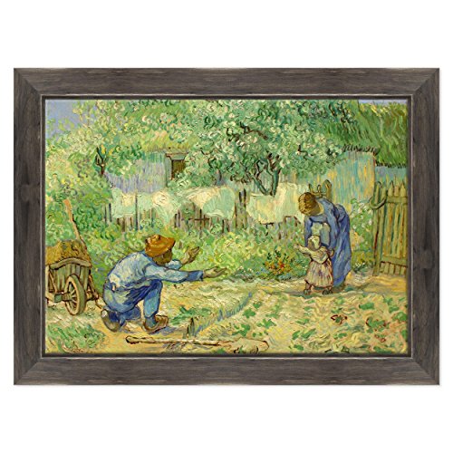 Oculis Quadro su Tela Canvas INTELAIATO - con Cornice - Van Gogh - First Steps - Primi Passi - 70x100cm - Stile Country Nero Shabby - (cod.2643)