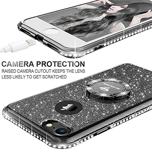OCYCLONE Brillantini Cover per iPhone 7 / iPhone 8 Custodia Glitter con Supporto per Anello e Cordino, TPU Cover Protettiva Antiurto Morbida per iPhone iPhone 7/8, Nero