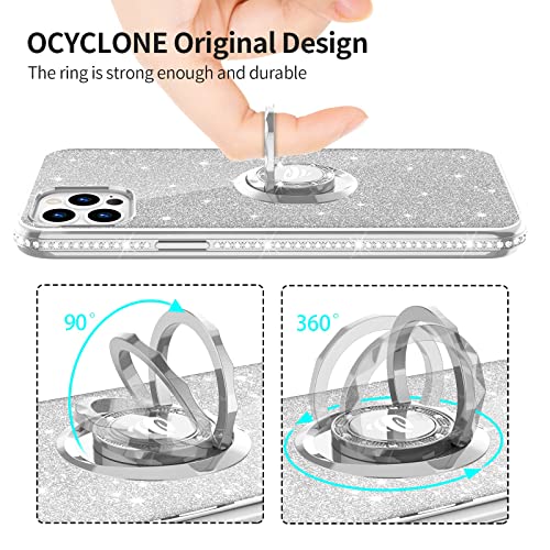 OCYCLONE Cover per iPhone 12/iPhone 12 Pro, Custodia Protettiva Glitterata con Supporto per Anello a 360 ° e Cinturino da Polso per Ragazze e Donne, iPhone 12/12 Pro Custodia 6.1 Pollici - Argento