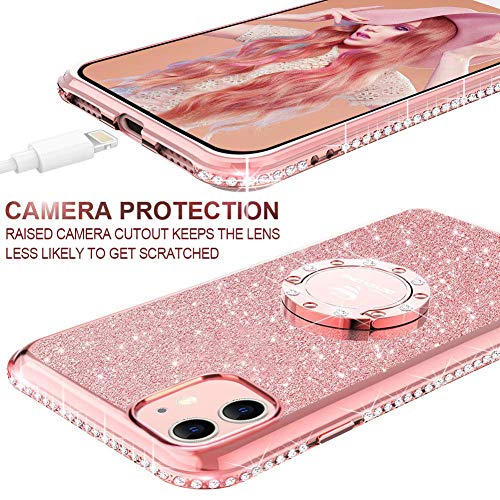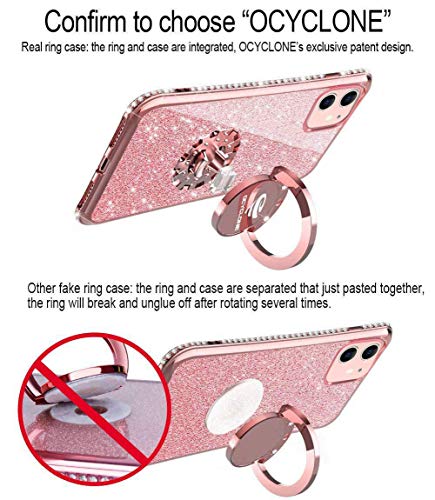 OCYCLONE Cover per iPhone 11, glitter + cordino glitterato lucido strass iPhone 11 Cover con anello cavalletto Bling per ragazza donna custodia protettiva per Apple iPhone 11, oro rosa