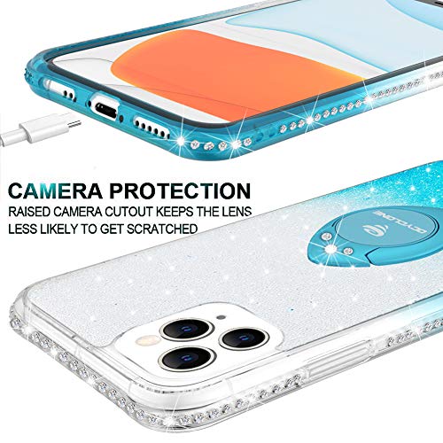 OCYCLONE Cover iPhone 11 Pro, Glitter Strass Custodia Kickstand Rotante e Cordino, Bling Brillante Lucciante TPU Custodia per iPhone 11 Pro da 5.8 Pollici - Ciano