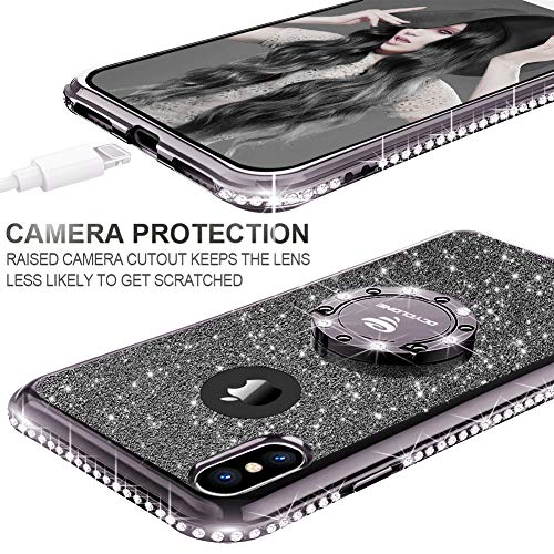 OCYCLONE Cover per iPhone XS Max 6,5 Pollici, con Supporto per Anello con Strass Glitter e Cordino, Custodia con Diamante Scintillante Bling Cover Protettiva Antiurto per iPhone XS Max - Nero