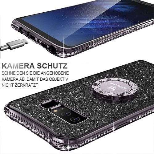 OCYCLONE Cover Samsung Galaxy Note 8 Glitter Strass per Ragazze,Neck Strap e Kickstand Bling Silicone Diamante Brillante Cristallo Lucciante Luminosa Custodia per Samsung Galaxy Note 8-Nero