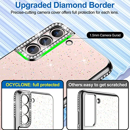 OCYCLONE Crystal Cover Compatibile con Samsung Galaxy S22 5G 2022 (6,1 Pollici), Custodia Protettiva Antiurto con Strass Glitterati per Donne Ragazze, Trasparente + Nero