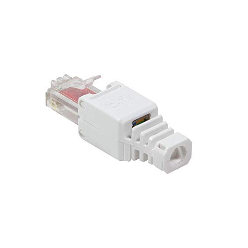 Questo connettore di rete RJ45 è ideale per il montaggio rapido senza attrezzi su CAT 5, Cat.6 e anche cavi Cat.7 (AWG 23 - 26) diametro esterno fino a 6,3 mm, sia con filo rigido o flessibile. Grazie alla codifica a colori del connettore, i singoli fili possono essere cablati in un batter d'occhio.