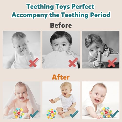 【Sicuro e durevole】 Realizzato in materiale di alta qualità senza spigoli vivi per proteggere le labbra e le gengive del tuo piccolo, può essere toccato e agitato a piacimento, rendendolo un perfetto giocattolo per il sonaglio e la pancia. Facile da pulire e può essere messo in acqua bollente per asciugarsi naturalmente.