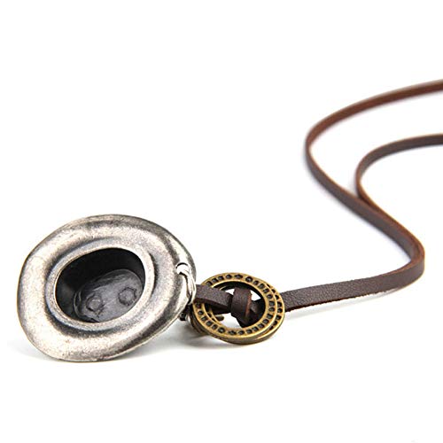 ODETOJOY Uomo in lega di pelle ciondolo Collana per Donna Collana in Pelle con Pendente Croce regolabile catena Ciondolo a forma di fischio d'epoca a forma di testa di lupo (cappello)