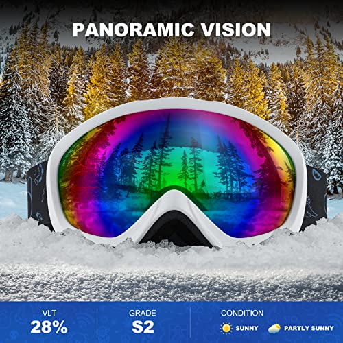 ❄ Maschera Sci Bambini di 6-16 Anni: questi occhiali da sci sono progettati per bambini di 6-16 anni, sono disponibili con montatura in bianco e nero e lenti multicolori, adatti a ragazze, ragazzi, ragazze e ragazzi.