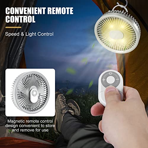 Telecomando e Luci LED: rispetto alla tradizionale ventilatore da tavolo, il nostro ventilatore portatile è dotata di telecomando wireless, non c'è bisogno di alzarsi o allungare le braccia per regolare la ventola, così comoda per le mani impegnate. 4 luci a LED integrate, può essere utilizzata come luce da lettura, lampada da scrivania a casa o lampada da tenda per campeggio.
