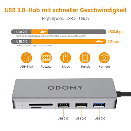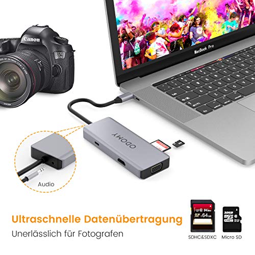 ODOMY USB C Hub - Adattatore per PC Type-C, Cellulare e Switch - VGA, Audio, USB-C, HDMI 4K & 2K, USB 3.0 Port, USB 2.0 Port * 2, lettore di schede SD/TF - 9 in 1 Multiport