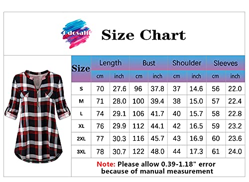 Caratteristiche: Odosalii 3/4 manica arrotolata e camicetta a maniche corte con mezza zip unica scollo a V, e il motivo è classico plaid e stampa floreale. Le maniche arrotolate sono regolabili, si può indossare come una camicetta a maniche lunghe o arrotolarla. L'arco hew della camicetta può coprire il fondo e l'altalena lusinghiera è molto chic