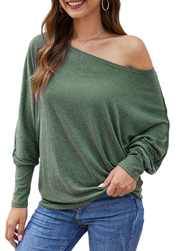 Odosalii Maglietta da donna con spalle scoperte, maniche corte/lunghe, casual, a pipistrello, da donna, 02-verde, L