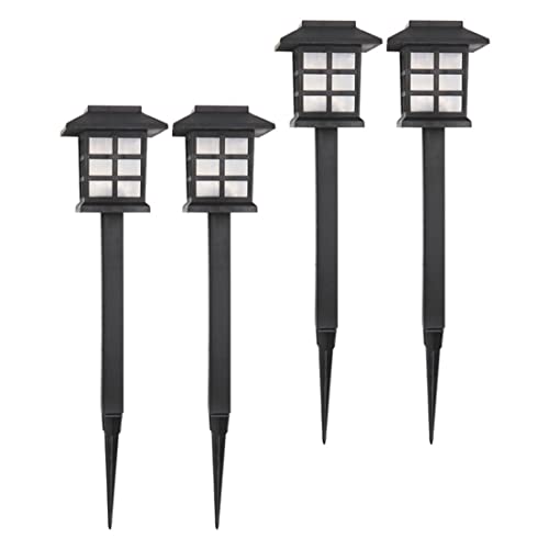 Odoukey Luci da giardino solare, 4 pezzi di palo a terra a forma di lanterna giapponese Lampade, lampada paesaggistica a led da giardino impermeabile, luci da esterno per pathway prato patio (luce