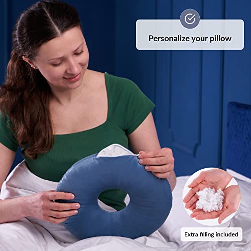 ODOXIA Cuscino Per Piercing | Sollievo Dal Dolore All'orecchio | Cuscino Per Fianco | Imbottitura Regolabile | Cuscino Ciambella | Cuscino Con Foro Per Orecchio | Piercing Pillow (Dark Blue)