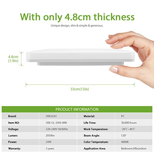 Oeegoo 24W Lampada con Sensore a Microonde Plafoniera LED Quadrata Illuminazione Soffitto Lampada da Parete IP44 2050lm 4000K Luce Bianco Naturale
