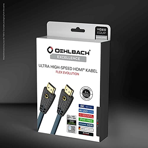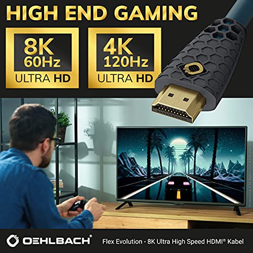 OEHLBACH Flex Evolution - Cavo HDMI, protezione antipiega brevettata, 8K ultra veloce, 8K FUHD 60Hz 4320p/4K 120Hz 2160p - 48Gbps (21:9 Cinema, Dolby Vision, Dynamic HDR 10+, VRR, eARC, UHD2), 1,5 m