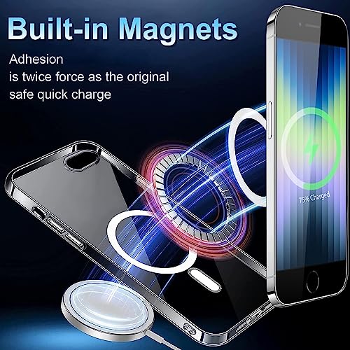【Forte Adsorbimento Magnetico】 la custodia magnetico trasparente per iPhone 8/iPhone SE 2020/iPhone 7/SE 2022 ha 38 magneti quadrupolari incorporati e il caricatore Magnetico si calibrerà automaticamente.