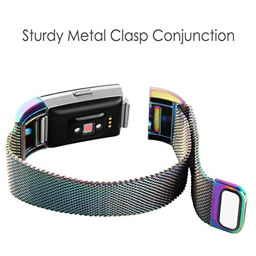 Oenbopo - Cinturino da polso per Fitbit Charge 2, cinturino loop in maglia milanese in acciaio INOX regolabile, pezzo di ricambio, chiusura a calamita, senza fibbia