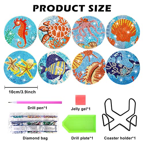 6 Oezzi Sottobicchieri di Diamond Painting, DIY Sottobicchieri con Pittura a Diamante con Supporto, Elementi Marini Sottobicchieri di Diamond Painting per Principianti, Adulti Bambini