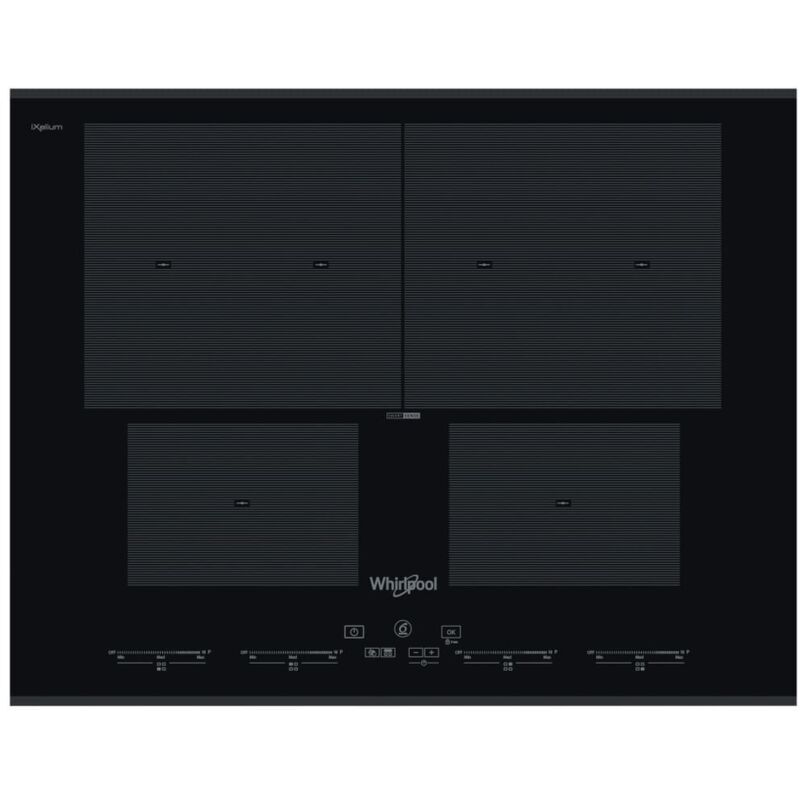 Whirlpool Piano cottura a induzione in vetroceramica - SMO 654 OF/BT/IXL. Colore del prodotto: Nero, Posizionamento dell'apparecchio: Da incasso, Dimensione della larghezza del piano cottura: 65 cm. Bruciatore piccolo: 1250 W, Bruciatore medio: 1250 W, Zona di cottura/fornello a fuoco lento a piena potenza: 1800 W. Tipo di controllo: Touch, Posizione di controllo: Frontale superiore, Tipo di display: LED. Potenza aggregata (elettrica): 7400 W, Tensione di ingresso AC: 230 V, Frequenza di ingresso AC: 50 - 60 Hz. Larghezza: 650 mm, Profondità: 510 mm, Altezza: 54 mm