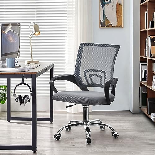 【Sedia da Ufficio in Rete Traspirante】 Questa sedia per computer è composta da rete traspirante di alta qualità e base cromata, che è resistente, stabile e garantisce un uso prolungato.
