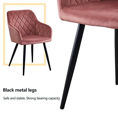 OFCASA Sedie Sala da Pranzo in velluto 2 Pezzi Sedile Imbottito Gambe in Metallo Sedie da Cucina con Braccioli Moderno Poltrona per Sala da Pranzo Cucina Casa Ufficio, Rosa