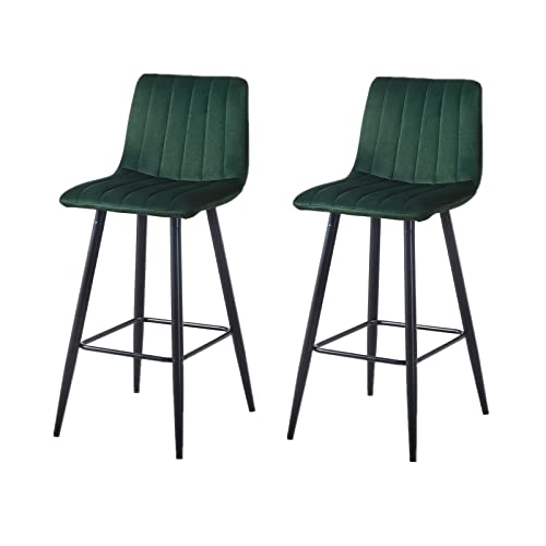 OFCASA - Set di 2 sgabelli da bar imbottiti in velluto con schienale, sedie da bancone per casa, cucina e bar, colore: verde