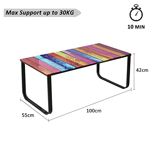 OFCASA Tavolino da salotto in vetro dipinto arcobaleno dal design moderno con gambe in metallo tavolino da salotto
