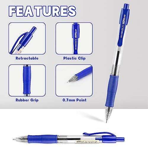OFFCUP Penna Roller a Inchiostro Gel,12PCS Blu a Sfera,0.7mm Retrattile,Asciugatura Veloce per Scrittura,Appunti,Studio, Journaling e Schizzi, In Plastica Riciclata.