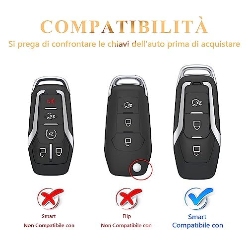 【Compatibilità】Copri chiave auto compatibile con Ford Focus 3 Focus 4 Mondeo5 Mustang 3 Mustang 4 Fiesta Ecosport Kuga Galaxy Explorer Ranger Edge Fusion Escort MK3 MK4 MK5 MK8 S-Max ST Ka. (Si prega di confrontare la chiavi auto con l'immagine prima dell'acquisto! E la chiave auto non è inclusa)