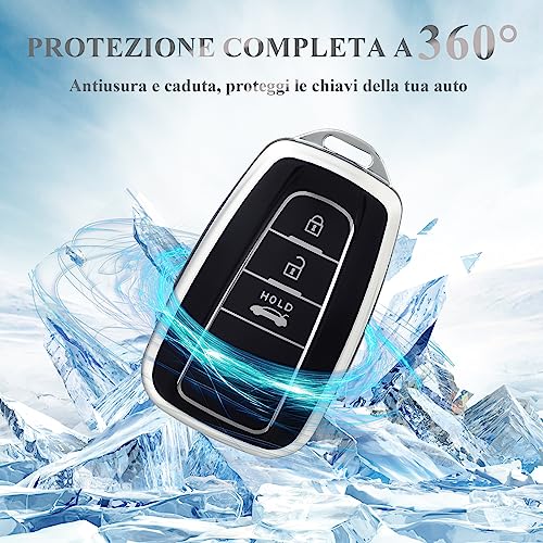 OFFCURVE Custodia Chiavi Auto Guscio Chiave, Cover Chiave Copri Chiavi Telecomando 3 Tasti Adatto per Toyota Corolla RAV4 Camry Prius Prime Avalon C-HR GT86 Highlander Land Cruiser Prado Yaris Hilux