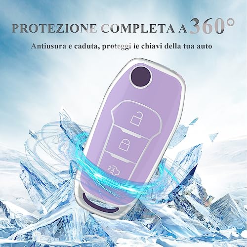 OFFCURVE Custodia Chiavi Auto Guscio Chiave, Cover Chiave Copri Chiavi Telecomando Adatto per Ecosport Edge Explorer Everest Escape Fiesta Focus Fusion Titanium Galaxy Kuga Mondeo Puma Tourneo Custom