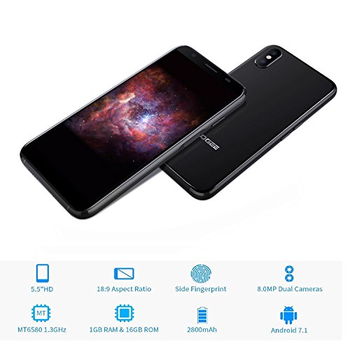 Offerte Smartphone, DOOGEE X55 Telefono Economico 3G, Dual SIM Free Schermo HD da 5.5" 18:9 Cellulari in Offerta Android 7.0 Telefonia Mobile con Doppia 8.0MP & 5.0MP 2800mAh Processore MT6580- Nero